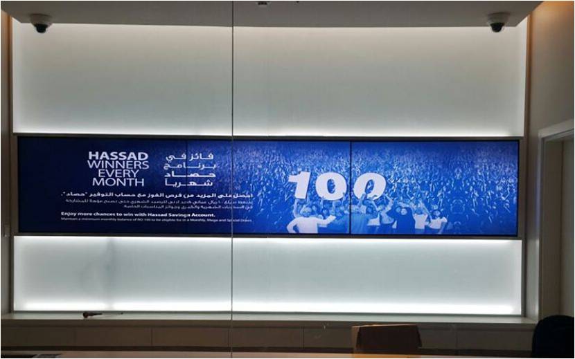 A Big size touch screen to be interacted by the customers inside the bank on the products & services offered